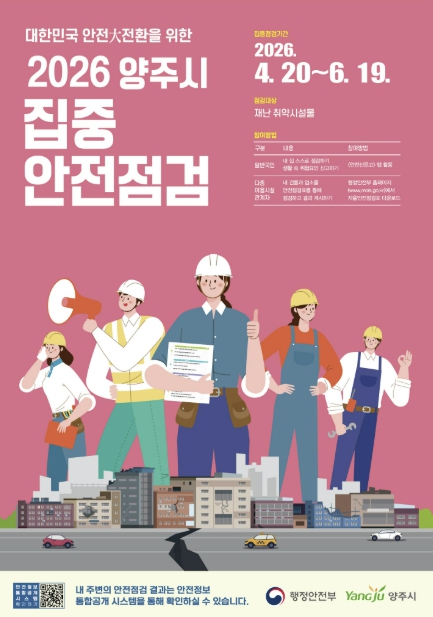 [뉴스앤톡] 시민 안전 사각지대 해소를 위해 경기 양주시가 ‘2026년 집중 안전 점검’을 추진한다.