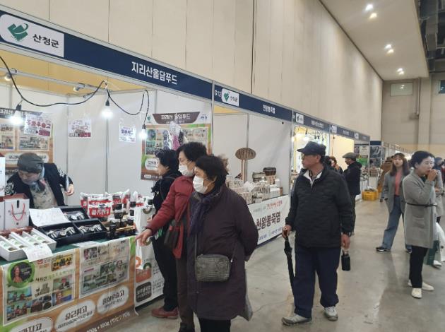 산청군은 20개 농가가 참여해 곶감, 약초, 버섯, 꿀 등 다양한 품목을 선보인다.