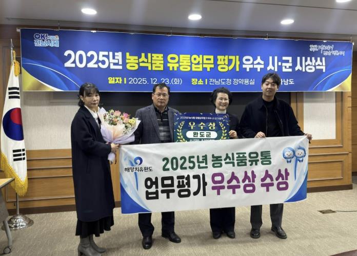[뉴스앤톡] 완도군이 전라남도 주관 '2025년도 농식품 유통 업무 평가'에서 ‘우수상’을 수상했다.