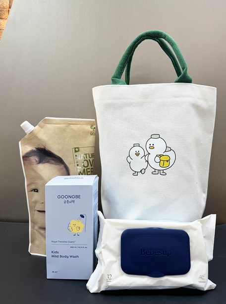 마미박스는 아기 전용 바디워시와 세제, 물티슈를 담은 에코백(손가방)으로 구성돼 있으며 가방 전면에는 2025 대한민국 지자체 공공캐릭터 페스티벌에서 대상을 받은 김해시 대표 캐릭터 토더기 문양이 새겨져 있다.