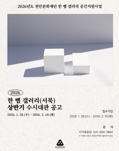 [뉴스앤톡] (재)천안문화재단은 오는 28일부터 상반기 한 뼘 갤러리 수시대관 공모 접수를 받는다고 27일 밝혔다.