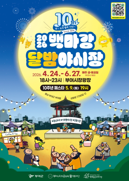 부여군과 부여군지역공동체활성화재단은 지역경제 활성화와 관광객 유치를 위해 ‘2026 백마강 달밤야시장’을 개장한다고 밝혔다.