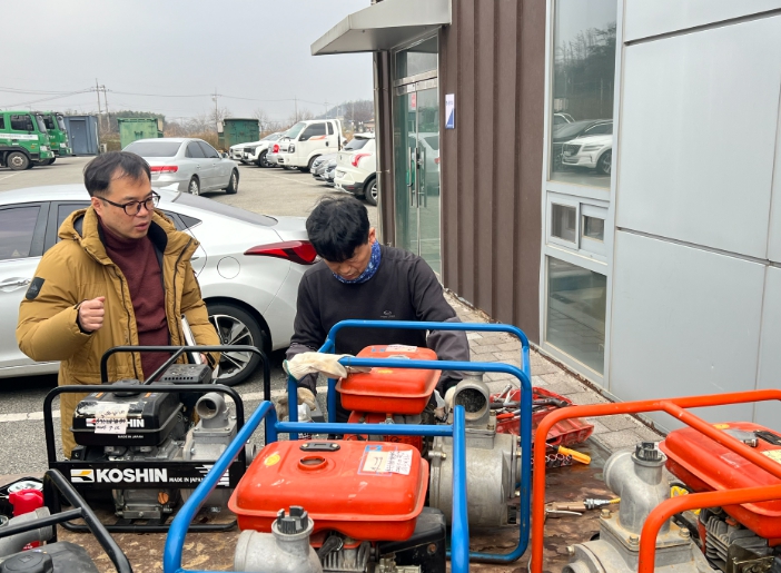 합동 점검반은 읍·면에서 보유하고 있는 양수기의 상태를 점검하고, 소모품 교체와 수리 등을 진행해 즉시 사용이 가능하도록 정비했다.