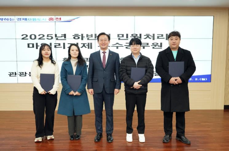 [뉴스앤톡] 홍천군은 2025년 하반기 민원 친절상 및 민원 처리 마일리지제 우수공무원 14명을 선정해 2월 정례직원 조회에서 시상했다고 밝혔다.