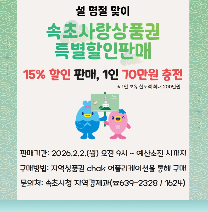 | ▲ 명절 맞아 2월 속초사랑상품권 ‘특별할인’ 판매 |