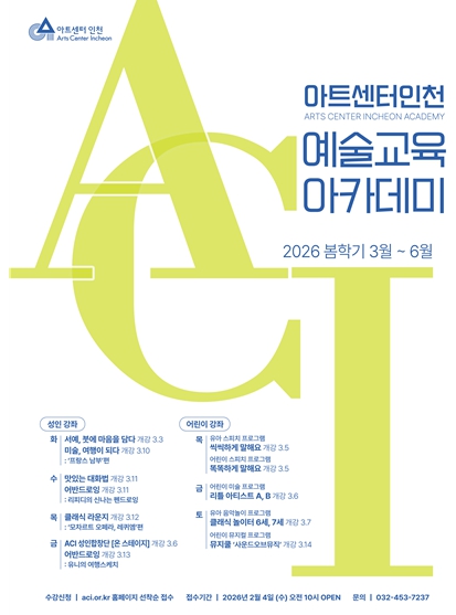 모든 프로그램은 봄학기 주 1회씩 10~12주간 진행되며, 수강 신청은 2월 4일 오전 10시부터 아트센터인천 홈페이지에서 가능하다. 자세한 일정과 수강료는 홈페이지에서 확인 가능하다.