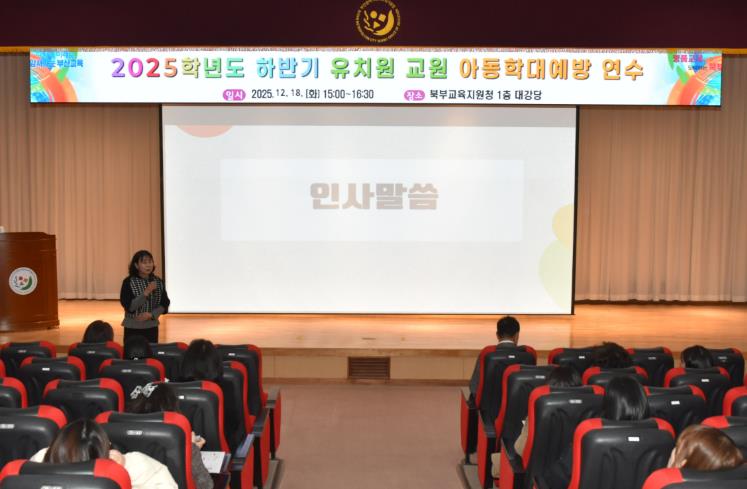 최경이 교육장은 “이번 연수를 통해 교원들의 아동학대 인식과 대응 능력이 한층 강화돼 안전한 교육 환경이 조성될 것으로 기대한다”며 “유치원에서 작은 이상 징후도 놓치지 않고 살펴볼 수 있는 교원의 민감성과 전문성이 무엇보다 중요하기에 앞으로도 지속적인 연수와 유관기관 협력을 통해 아동학대 예방과 대응체계를 더욱 촘촘히 하겠다”고 말했다.