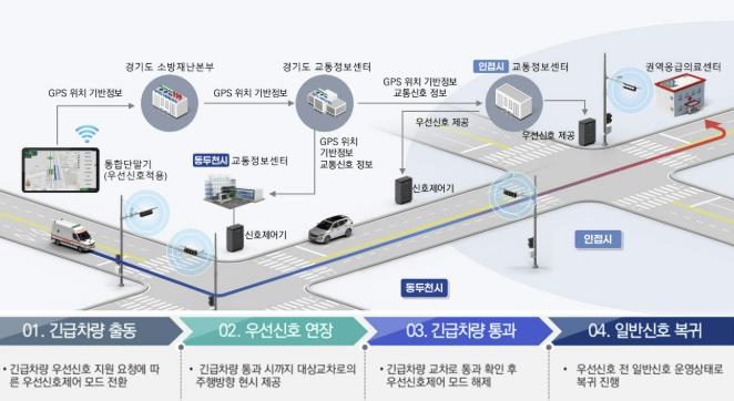 이번에 함께 구축된 광역 긴급차량 우선신호시스템은 소방·구급 등 긴급차량 출동 시 이동 경로상의 신호를 자동으로 우선 배정해 골든타임 확보와 도착 시간 단축을 지원한다. 이 시스템은 경기도 내 전 시·군과 연계 운영될 수 있도록 설계돼, 시 경계를 넘어선 광역 출동 상황에서도 연속적인 우선신호 제공이 가능하다.