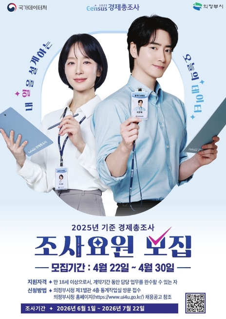 [뉴스앤톡] 의정부시는 6월 1일부터 실시되는 ‘2025년 기준 경제총조사’의 원활한 추진을 위해 조사요원 77명을 모집한다.