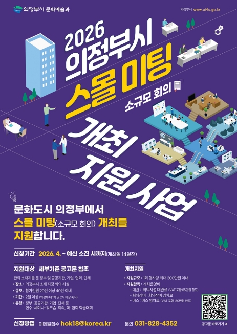 [뉴스앤톡] 의정부시는 관외에 소재지를 둔 기관 및 단체 등을 대상으로 ‘2026 의정부시 스몰미팅(소규모 회의) 개최 지원사업’을 추진한다.