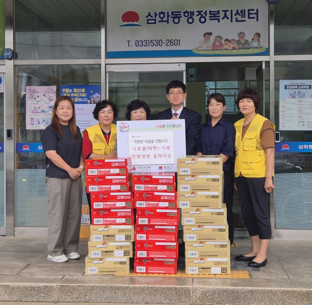[뉴스앤톡] 한화생명 금융서비스 동해지점(지점장 지종탁)에서 지난 17일 삼화동행정복지센터를 방문하여 라면 2종 20박스를 어려운 이웃들에게 전달해달라며 기탁했다.