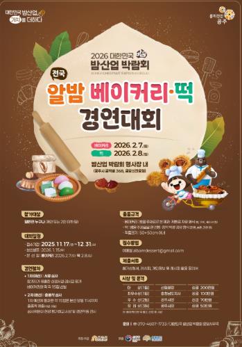 [뉴스앤톡] 공주시는 2026년 2월 4일부터 8일까지 열리는 ‘2026 대한민국 밤산업 박람회-전국 알밤 베이커리·떡 경연대회’의 참가자를 모집한다고 밝혔다.