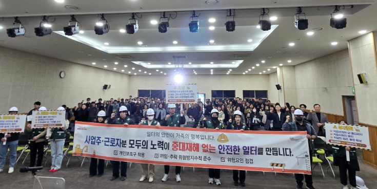 결의대회는 중대재해 예방과 산업안전을 위한 안전문화 실천 결의문을 낭독하고 현수막과 피켓을 활용해 안전메시지를 전파했다.