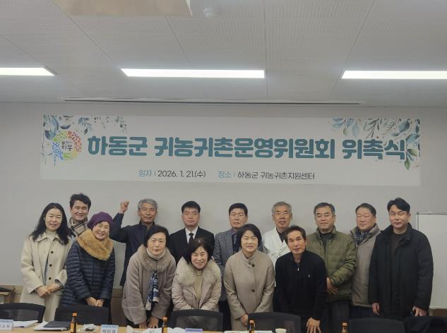 하동군 귀농귀촌운영위원회는 하동군 귀농귀촌지원센터 소속으로 총 18명(당연직 2명, 위촉직 16명)으로 구성됐다. 당연직은 귀농귀촌지원센터장과 농업정책담당 주사이며, 위촉직은 기존 위원 11명 연임과 신규 위원 5명 추가 위촉으로 운영된다.
