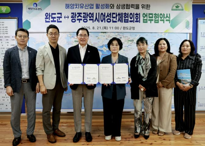 협약식은 지난 8월 21일 완도군청에서 진행됐으며, 신우철 완도군수와 이영숙 회장을 비롯한 관계자들이 참석했다.