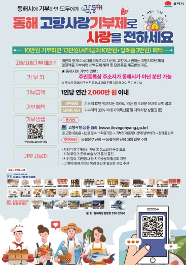[뉴스앤톡] 동해시는 연말정산 시기를 맞아, 지속적인 기부 참여 분위기를 조성하고 고향사랑기부제 활성화를 도모하기 위해‘연말 추가 이벤트’를 추진한다.