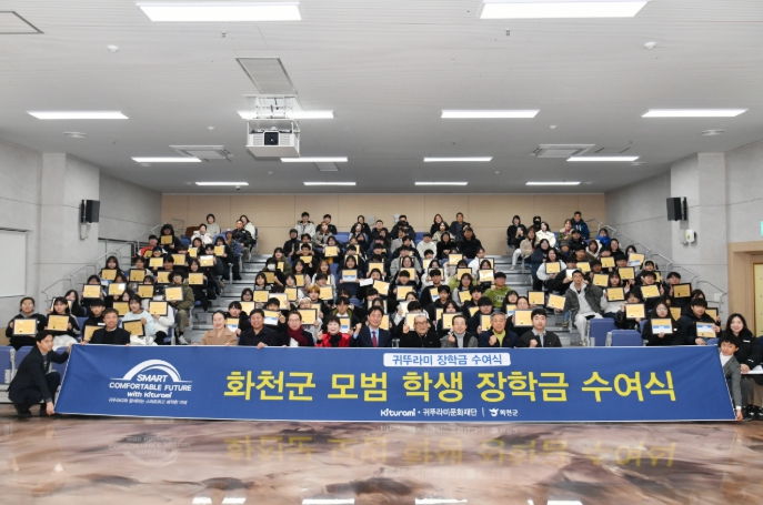 이날 장학금 수여식은 귀뚜라미 문화재단의 장학지원 사업, 화천군이 추진 중인 지역인재 육성 장학사업의 일환으로 마련됐다.