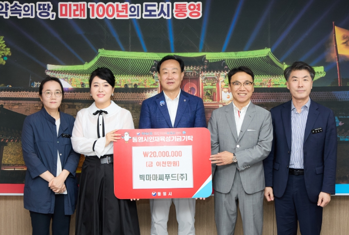 [뉴스앤톡] 통영시에 소재한 빅마마씨푸드(주)는 지난 24일 지역의 인재를 육성하는 데 보탬이 되고자 인재육성기금 2000만 원을 통영시(시장 천영기)에 기탁했다.