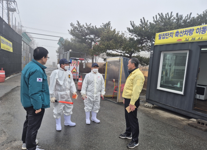 [뉴스앤톡] 김제시 농업기술센터는 지난 16일 방역 최일선인 용지 산란계 밀집단지‘거점소독시설, 통제초소, 알 환적장’을 방문해 조류인플루엔자(AI) 확산 차단을 위한 차량 및 대인 소독 상황과 소독시설의 정상 작동 여부 등 방역상황을 점검하고 초소 현장 근무자들을 격려했다고 밝혔다.