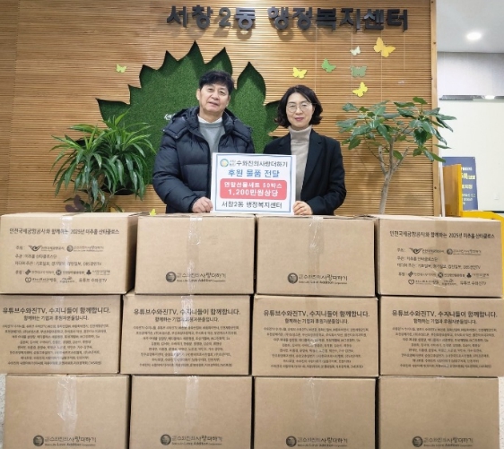 [뉴스앤톡] 인천시 남동구 서창2동 행정복지센터는 (사)수와진의 사랑더하기로부터 어려운 이웃을 위한 겨울 선물세트 50상자를 기부받았다고 19일 밝혔다.