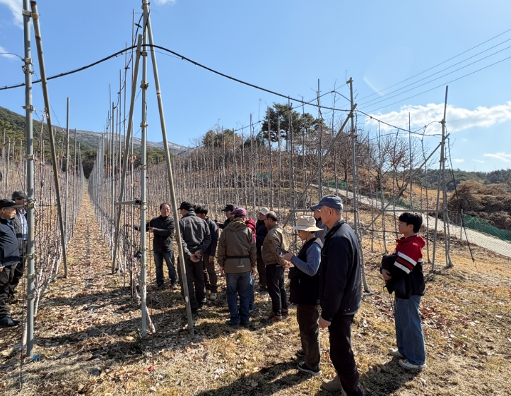 교육은 3월부터 11월까지 9개월간 월 1회 진행된다. 사과 재배농가 18명, 복숭아 재배농가 8명 등 총 26명이 참여하며 별도 신청하지 않은 농업인도 현장 참관이 가능하다.