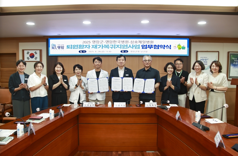 [뉴스앤톡] 영암군이 8/29일 영암군청에서 영암한국병원(병원장 오남호), 삼호제일병원(병원장 이동준)과 ‘퇴원 환자 재가 복귀 지원사업’업무협약을 체결했다.