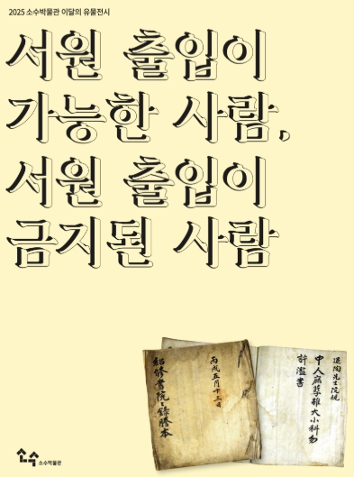 [뉴스앤톡] 영주시 소수박물관은 12월 1일부터 2026년 2월 22일까지 이달의 유물전시 ‘서원 출입이 가능한 사람, 서원 출입이 금지된 사람’을 개최한다.