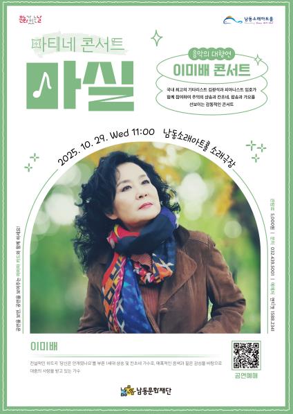 | ▲ 남동문화재단, 10월 29일‘이미배 콘서트’ 개최 |