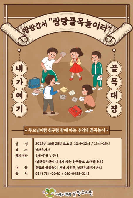 남원유치원은 매해 주제를 달리하여 ‘랑랑놀이터’를 운영해 왔으며 올해는 사라져 가는 전통 골목놀이의 즐거움을 되살리는 추억의 놀이터로 운영한다.