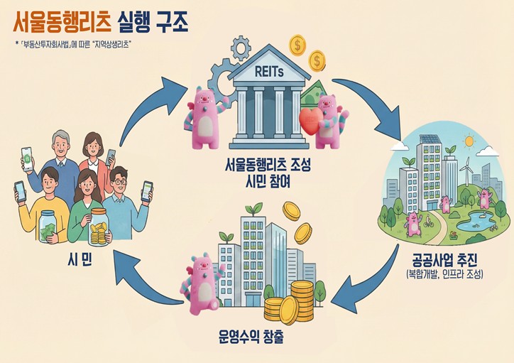시가 구상 중인 ‘서울동행리츠’는 리스크가 큰 ‘개발 단계’는 공공이 주도해 사업의 불확실성을 제거하고, 준공 후 수익이 안정화되는 ‘운영 단계’에서 시민들이 주주로 참여해 수익을 나누는 구조를 기본으로 한다.