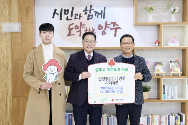 [뉴스앤톡] 양주시는 지난 3일 관내 신성통상㈜ 리치마트가 설 명절을 맞아 양주시에 백미 300포(약 1,100만 원 상당)를 기부했다고 밝혔다.