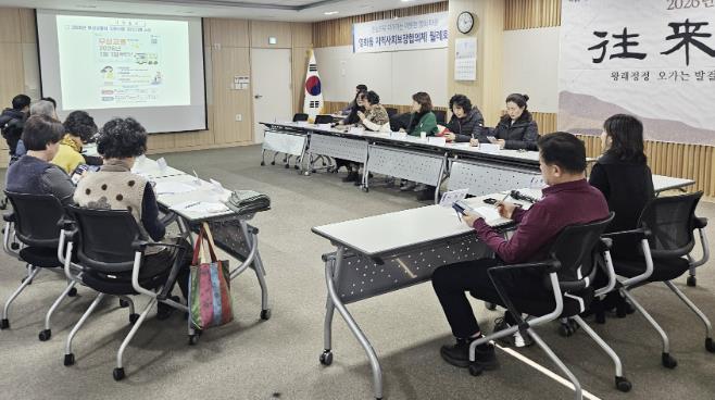 이날 회의에서는 지난해 운영 성과를 공유하고 올해 특화사업인 ‘영양듬뿍 행복반찬’, ‘어르신 사랑의 생신상’, ‘영화마을 똑똑똑’의 추진계획을 확정했으며, 주민들의 복지 체감도를 높이는 방향으로 확대 운영하기로 했다. 더불어 올해 시행 예정인 신규 사업에 대해서도 위원들 간 심도 있는 논의가 이루어졌다.