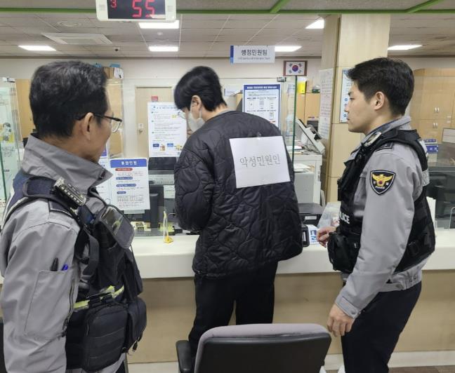 이날 △특이민원 발생 및 진정 유도 △녹음·녹화 △112상황실 신고 △피해 공무원 보호 및 방문 민원인 대피 △민원인 경찰 인계 순으로 진행됐다.