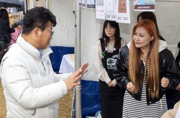 | ▲ 최충규 대덕구청장(사진 왼쪽)이 ‘2025 대덕물빛 축제’ 플리마켓 운영자를 격려하고 있다. |