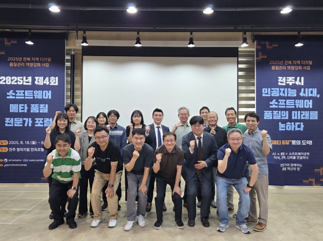 [뉴스앤톡] 전주시와 전주정보문화산업진흥원(원장 허전)은 지난 18일과 19일 이틀간 소프트웨어 품질 분야 전문가들이 한자리에 모여 인공지능 시대의 품질 혁신과 국가 경쟁력 강화를 위한 전략을 논의하는 ‘제4회 소프트웨어 메타 품질 전문가 포럼’을 개최했다.