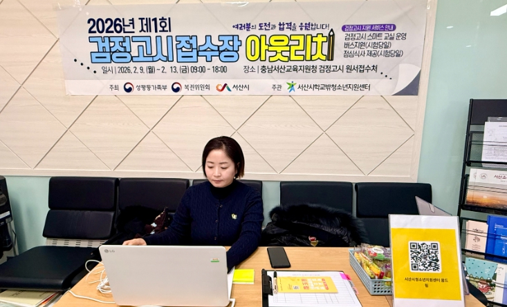 [뉴스앤톡] 서산시학교밖청소년지원센터(센터장 유인화)는 지난 2026년 2월 9일(월)부터 2월 13일(금)까지 5일간, 충청남도서산교육지원청 검정고시 접수 현장에서 학교 밖 청소년들을 위한 아웃리치 활동을 활발히 전개했다.