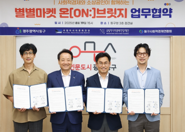 [뉴스앤톡] 광주 동구는 지난 19일 국립아시아문화전당, 국립아시아문화전당재단, 동구사회적경제연합회와 ‘별별마켓 온[ON:] 브릿지’의 원활한 운영을 위한 업무협약을 체결했다고 밝혔다.