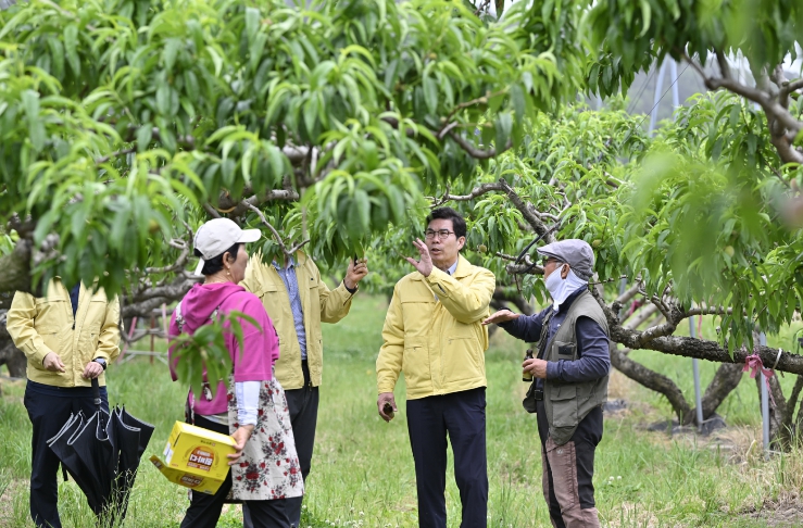 | ▲ 김광열 영덕군수가 관내 과수농가를 찾아 소통하고 있다. |