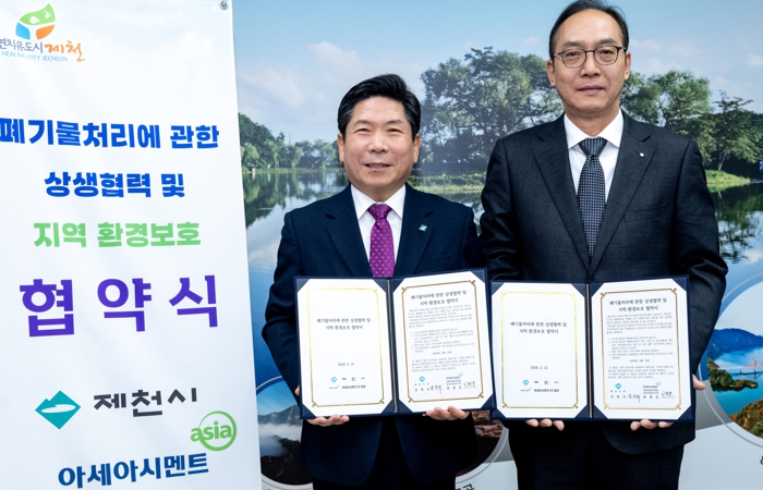[뉴스앤톡] 제천시와 아세아시멘트(주)제천은 13일 제천시청에서 ‘폐기물 처리에 관한 상생협력 및 지역 환경보호 협약’을 체결했다. 이번 협약은 수도권 종량제 생활폐기물의 제천시 반입을 차단하고 지역 환경 보호를 강화하기 위해 마련됐다.