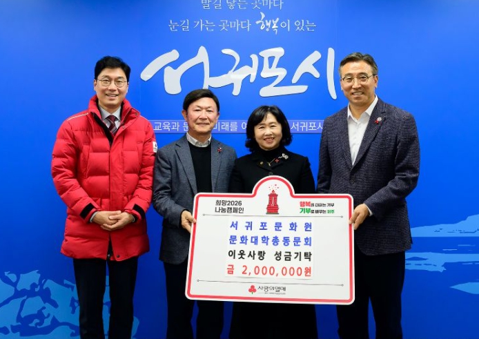 서귀포문화대학 총동문회는 연말을 맞아 서귀포시의 어려운 이웃들을 돕기 위해 십시일반으로 성금 200만 원을 모아 사회복지공동모금회를 통해 기탁했다.