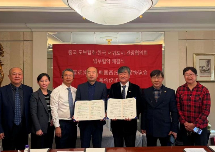 [뉴스앤톡] (사)서귀포시관광협의회는 중국걷기협회와 3일, 북경 베이징 구루 접견실에서 양 기관이 주관하는 유채꽃 국제걷기대회와 북경 걷기대회를 성공적으로 추진하기 위해 업무협약을 체결했다고 밝혔다.