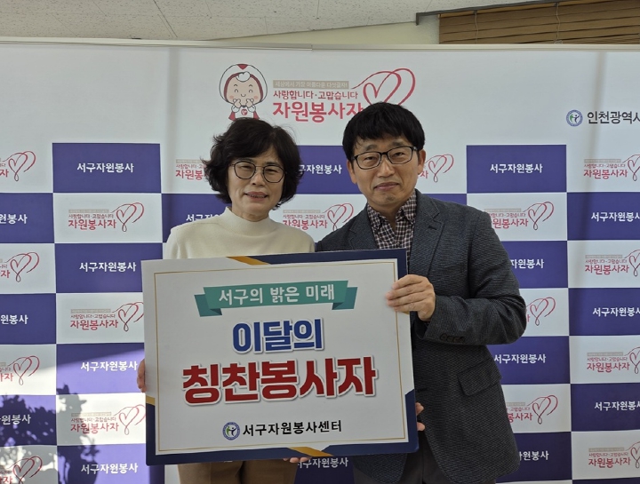 [뉴스앤톡] 인천서구자원봉사센터는 지역사회 발전을 위해 여러 분야에서 다양한 봉사활동에 참여한 자원봉사자를 격려하고 자원봉사 문화를 확산하기 위한 “자원봉사 칭찬릴레이”를 매월 실시하고 있다.