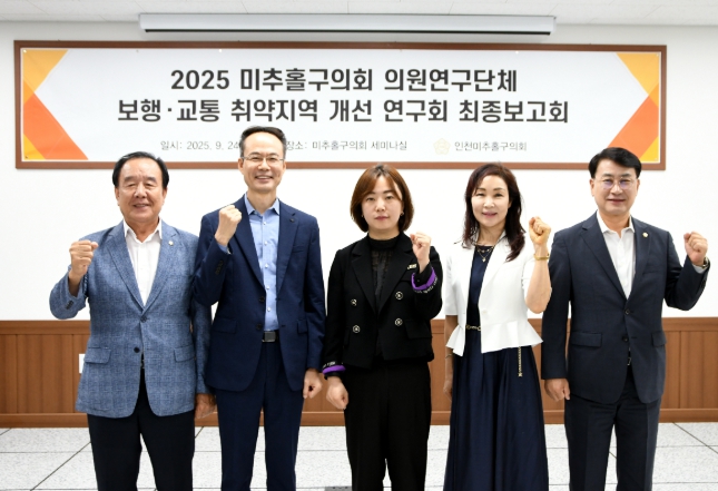 [뉴스앤톡] 인천광역시 미추홀구의회 의원연구단체 '보행·교통 취약지역 개선 연구회'(대표의원 박수연, 연구의원 장규철·배상록·김태계)가 2025년 9월 24일 미추홀구의회 세미나실에서 연구용역 최종보고회를 개최하고 성공적으로 마무리했다.