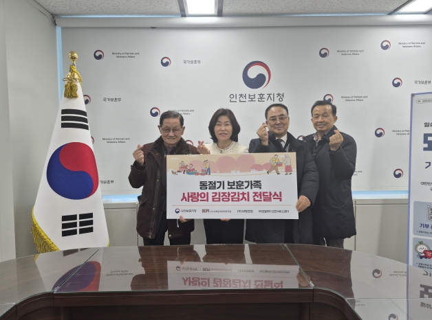[뉴스앤톡] 인천보훈지청은 12월 9일 겨레홀에서 사회문화 정책연구원 등 관내 3개 후원기관과 함께 동절기 보훈가족 사랑의 김장김치(1015kg, 145가구) 전달식을 개최했다.
