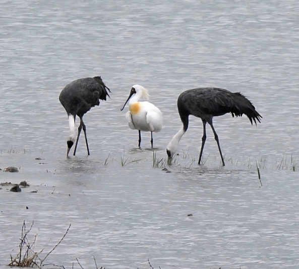 [뉴스앤톡] 지난 20일 순천만 복원습지에서 겨울철새인 흑두루미 한 쌍과 여름철새인 저어새가 한 장면에 포착됐다.