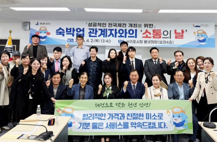 [뉴스앤톡] 서귀포시는 2026년 전국(장애인)체전의 성공적인 개최를 앞두고 지역 숙박업계와의 현장 소통을 강화하며 관광수용태세 개선에 본격 나서고 있다.