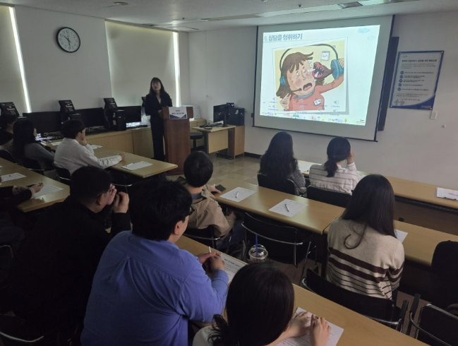 | ▲ 콜센터 1일 체험 참가자들이 사전교육을 받고 있다. |
