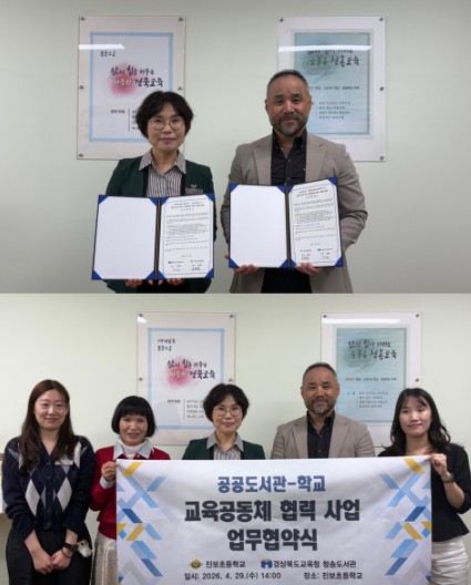 [뉴스앤톡] 경상북도교육청 청송도서관은 4월 29일 진보초등학교와 '2026년 공공도서관-학교 교육공동체 협력 사업'운영을 위한 업무협약(MOU)을 체결했다.