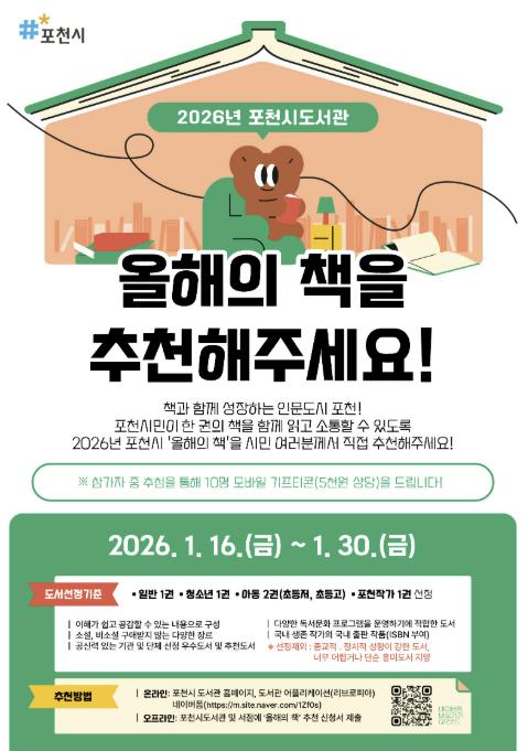 [뉴스앤톡] 포천시는 ‘2026년 포천시 올해의 책’ 선정을 위해 오는 16일부터 30일까지 시민 투표를 진행한다.