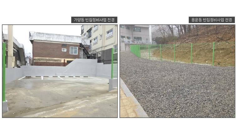 구는 이번 사업을 통해 가양동 298-37번지와 용운동 201번지에 위치한 빈집 2개소를 철거하고, 해당 부지에 공용주차장을 조성했다.